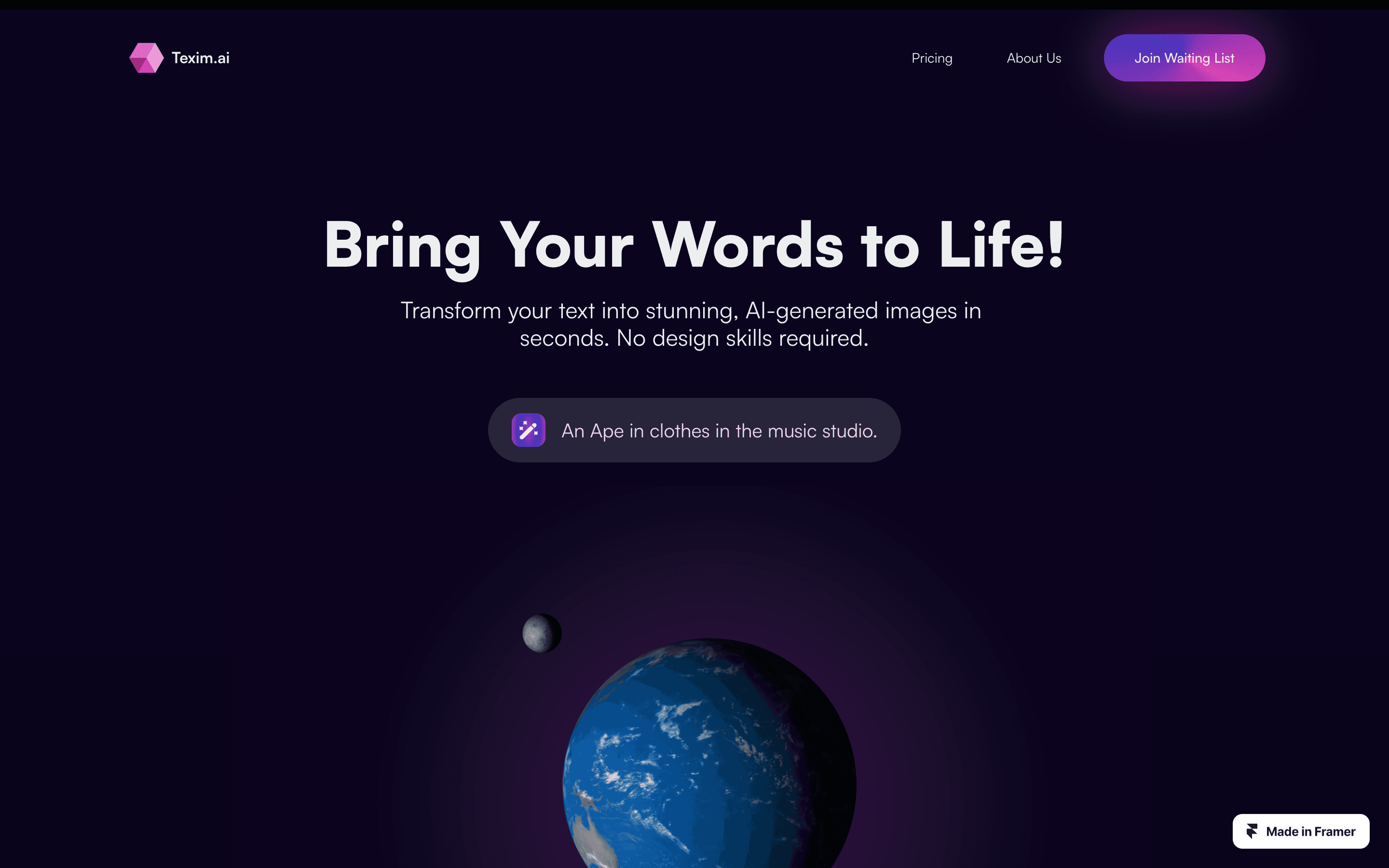 Transform your text into stunning, AI-generated images in seconds. No design skills required.